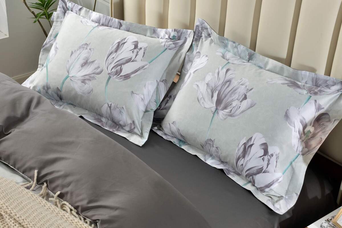 Изящный пошив с ушками 5см на наволочках и пододеяльнике. Лицевая сторона – принт, обратная сторона – однотонный макосатин глубоких цветов, что делает комплект сбалансированным, ста