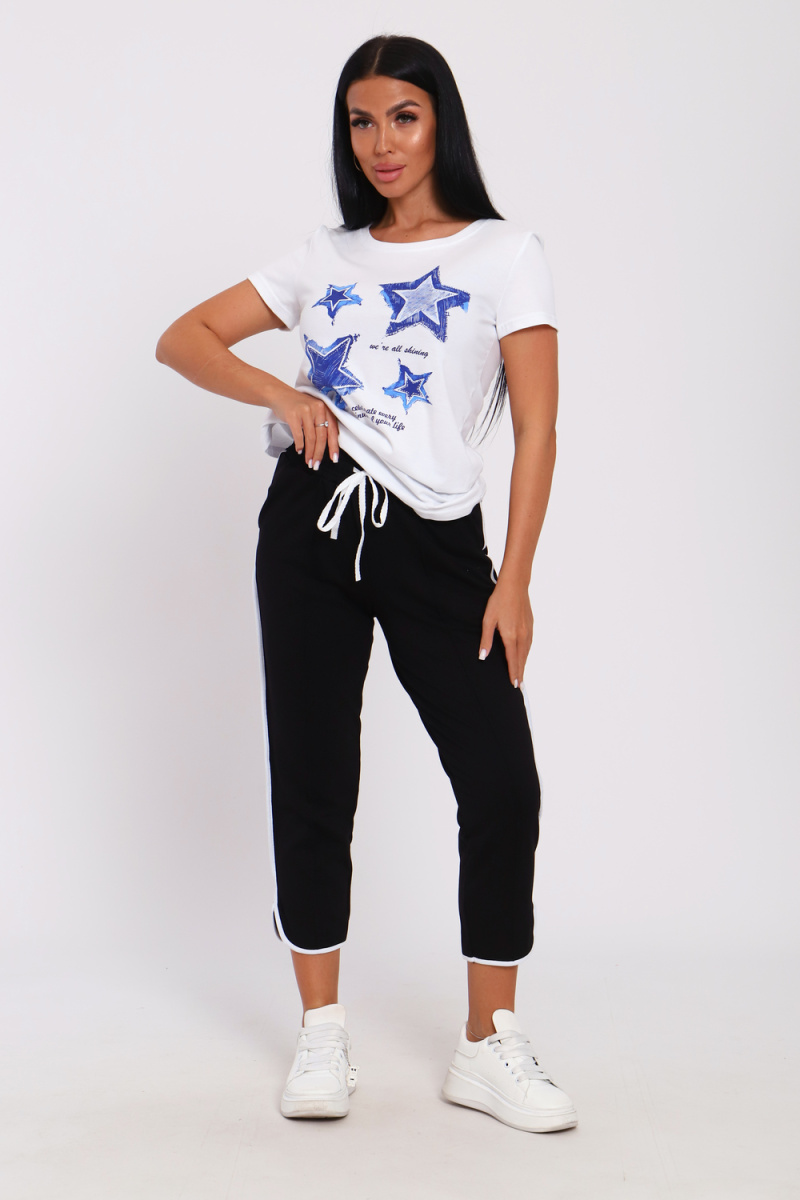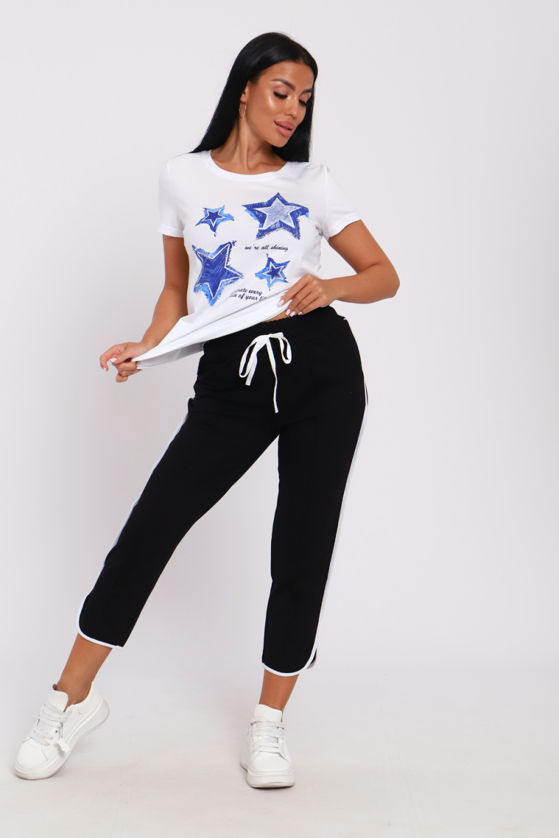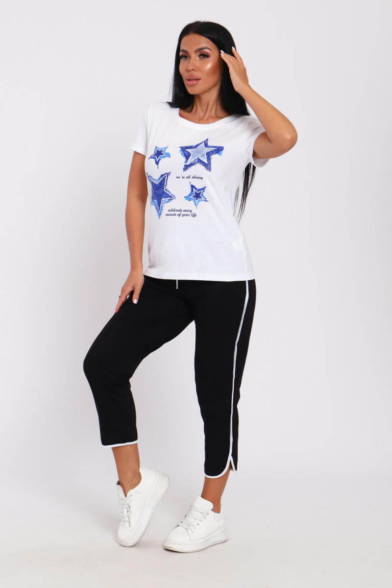 Костюм женский – это стильный и идеальный предмет гардероба ,идеально подходящий для дома и отдыха на любой период :весенний ,осенний, летний и зимний . Комплект состоит из футболки с красочным принтом и бриджи в контрастном цвете. В составе ткани хлопок , лайкра и полиэстер . Хлопковый материал очень комфортный и лёгкий в носке . Бриджи с удобной посадкой придадут вашему образу стильный и модный вид . Базовый современный костюмчик – популярный повседневный выбор на каждый день : на работу , для прогулок, праздников и на дачу . Универсальный стиль позволит вам создавать разнообразные образы , подходящие для любого события.